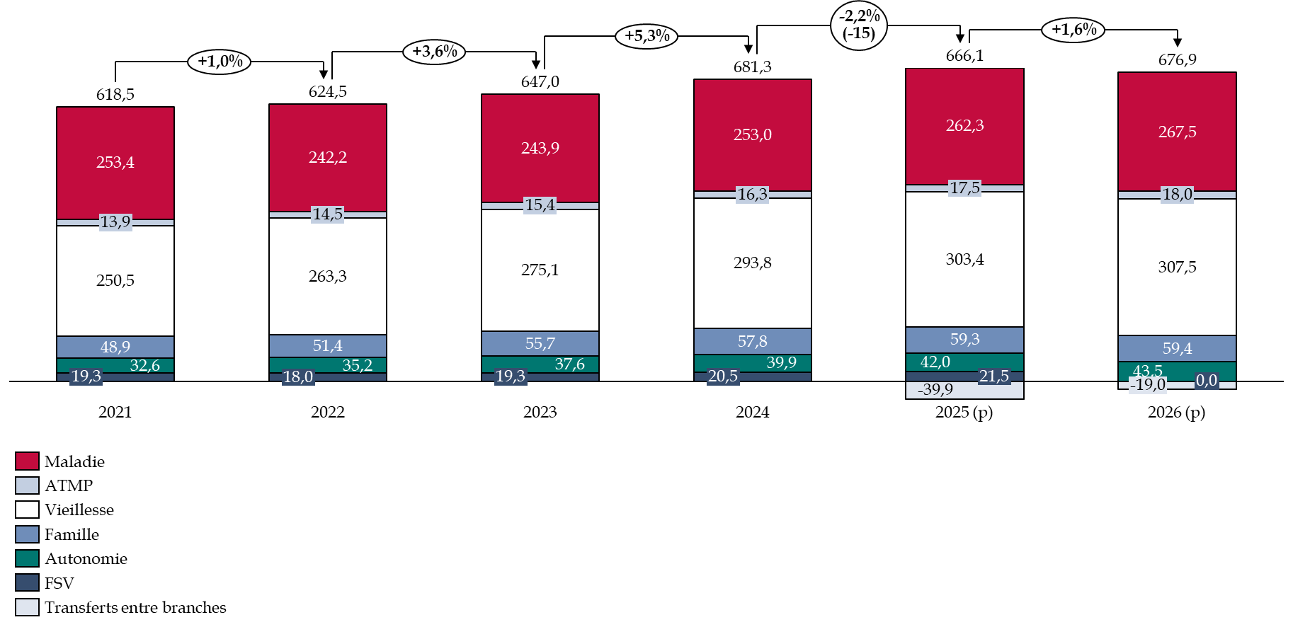 Note : à compter de 2026, le fonds de solidarité vieillesse est intégré dans la branche « vieillesse ».