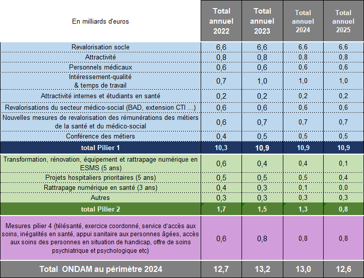 Quoique l'on pense de la justification des dépenses liées au Ségur au regard de l'état du système de santé français, force est de constater que leur montant est très élevé : elles représentent un surcoût de 13 milliards d'euros en 2024 et de 12,6 milliards d'euros en 2025.