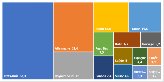 Seuls quatre pays ont dépassé en 2024 l'objectif de 0,7 % de l'APD en pourcentage de la richesse nationale : le Danemark (0,71 %), la Suède (0,79 %), le Luxembourg (1 %) et la Norvège (1,02 %), pour une moyenne de 0,33 %. Premiers contributeurs en valeur absolu avec près de 30 % de l'aide totale, les Etats-Unis consacraient 0,22 % de leur richesse à l'APD en 2024.