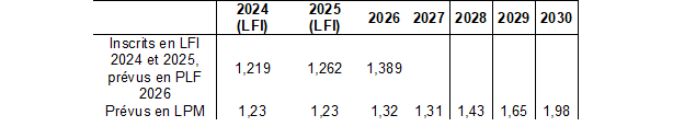 Si le montant de CP est supérieur de près de 70 M€ à ce qui était envisagé en LPM (1,32 Md€), dans le domaine de l'innovation, la « surmarche » de 3,5 Mds€ par rapport à la trajectoire inscrite en LPM dont bénéficiera la mission « Défense » en 2026 concernera essentiellement les AE. S'agissant de financement d'études et de projets menés sur plusieurs années, un décalage entre les AE et les CP n'est pas anormal. L'accentuation de l'effort s'agissant des CP ne devrait intervenir qu'à partir de 2027, selon une chronique qui devra être déterminée lors de l'actualisation annoncée de la LPM. Il aurait cependant été souhaitable que les études et projets supplémentaires lancés et financés grâce à la « surmarche » soient clairement identifiés dans les documents budgétaires.
