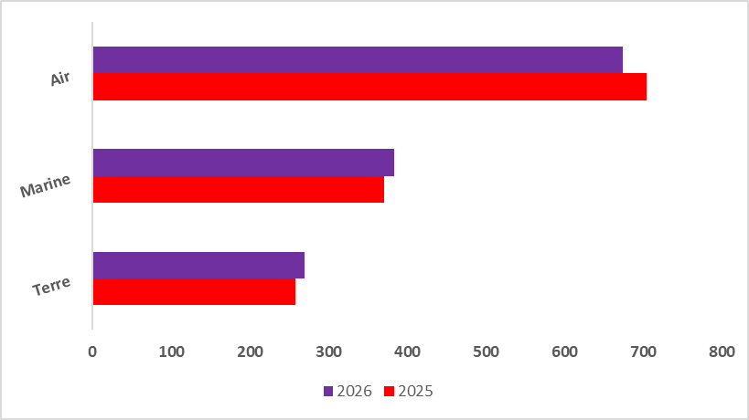 L'année 2026 est celle de la préparation à la haute intensité. Ce terme s'est imposé dans le débat public avec le conflit ukrainien et domine maintenant la pensée stratégique et la politique de nos armées. Alors qu'il figurait à trois reprises dans la Revue nationale stratégique (RNS) de 2017, il y est fait mention 20 fois en 2025, signe d'un changement complet de cap. |