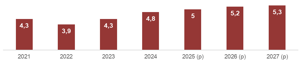 Comme les années précédentes, c'est la contribution de l'Unédic qui assure l'augmentation du financement de France Travail puisqu'elle est calculée par l'application d'un taux de 11 % sur les contributions d'assurance chômage de l'année n-2 avant application des exonérations et réductions de cotisations sociales. Or, le dynamisme de cette assiette, anticipée par l'Unédic au moins jusqu'en 2025, assure à France Travail une progression de ses moyens. En 2026, la contribution devrait ainsi atteindre 5,2 milliards d'euros.