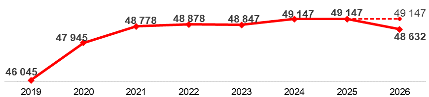 Source : Commission des affaires sociales (données : PAP/RAP 2019 à 2026)