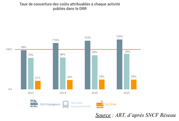 Dans le même temps, les péages ferroviaires versés par les autorités organisatrices de la mobilité (AOM) pour le transport conventionné et les opérateurs ferroviaires pour le transport librement organisé (SLO) continuent leur hausse inexorable.
