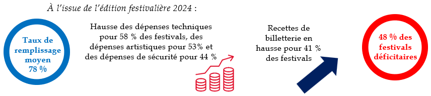 La grande fragilité économique des festivals, documentée par le baromètre national 20242(*), et les contraintes spécifiques (aléas climatiques, réglementation sonore) auxquelles ils sont soumis, a conduit le ministère de la Culture à mener au premier semestre 2025 une concertation nationale avec les représentants de la filière pour envisager l'avenir de leur modèle économique.