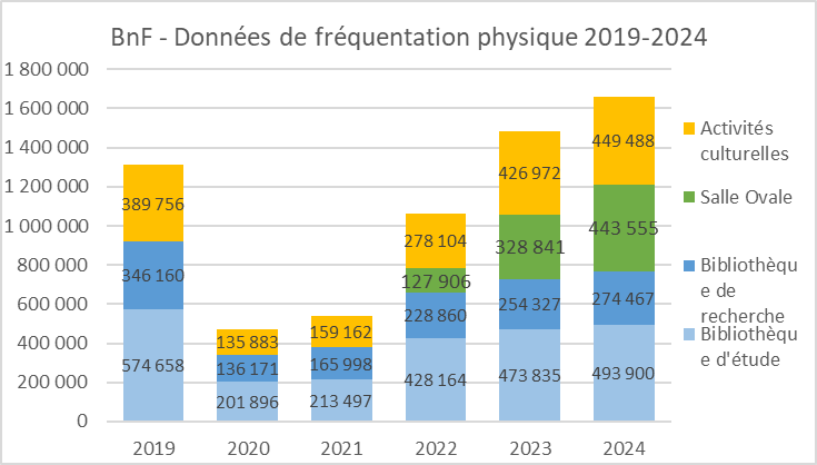 Le site François Mitterrand de la BnF, qui représente un ensemble de 200 000 m² dont 54 000 m² pour les salles de lecture et un hectare de jardin-forêt, fête cette année ses 30 ans. Pendant ces trente ans, la BnF est parvenue à assurer sa mission de démocratisation des savoirs et de la culture, avec une fréquentation toujours en hausse aujourd'hui, atteignant un nouveau record de 1,7 millions de visiteurs en 2024.