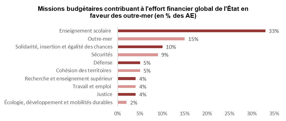 * 1 L'effort financier global de l'État en faveur des outre-mer rassemble l'ensemble des crédits concourant à l'action de l'État en faveur des outre-mer, y compris ceux mobilisés dans le cadre d'autres missions budgétaires comme l'éducation nationale ou la sécurité.