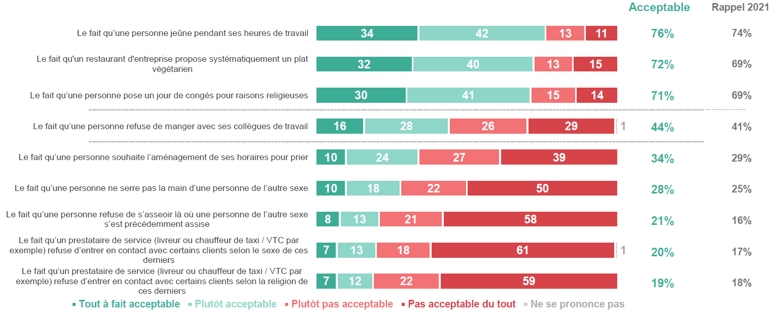 jugent les contestations de la laïcité « en augmentation » (contre 42 % en 2018) |