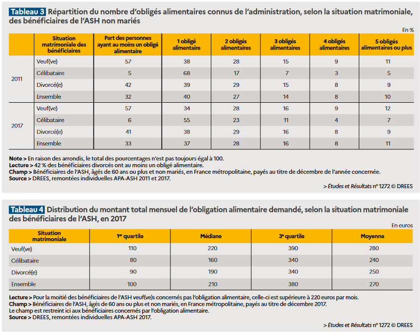 * 13 « Un tiers des bénéficiaires de l'aide sociale à l'hébergement ont au moins un obligé alimentaire », étude n° 1272 de la direction de la recherche, des études, de l'évaluation et des statistiques du ministère de la santé et de l'accès au soin, publiée en juin 2023.