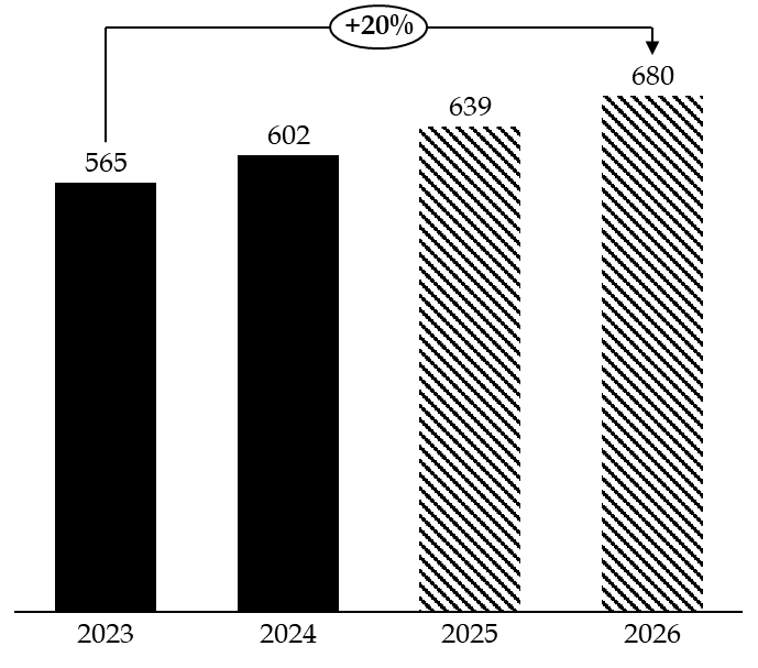 En effet, d'après une étude de l'OCDE réalisée en mai 202523(*), il existe actuellement une « surproduction d'acier » à l'échelle mondiale correspondant à l'écart entre la demande et l'offre. D'après les projections de la World Steel Association, la surcapacité atteint en 2024 un poids total de 602 millions de tonnes d'acier, soit plus de quatre fois la demande totale du marché européen.