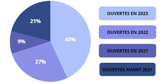 En outre, 43 % des relations d'affaires récipiendaires de virements suspects en 2023 avaient été ouvertes durant l'année 2023, contre seulement 21 % avant 2021.