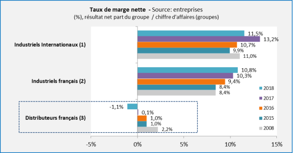 La première, demandée par le groupe alors nommé La République en marche, a rendu ses conclusions en 2019 et portait sur « la situation et les pratiques de la grande distribution et de leurs groupements dans leurs relations commerciales avec les fournisseurs ». Ce rapport d'enquête21(*) comportait de nombreux chiffres et analyses sur le niveau de marges de la grande distribution, le rapporteur, Grégory Besson-Moreau, estimant qu'elles étaient « structurellement faibles ».