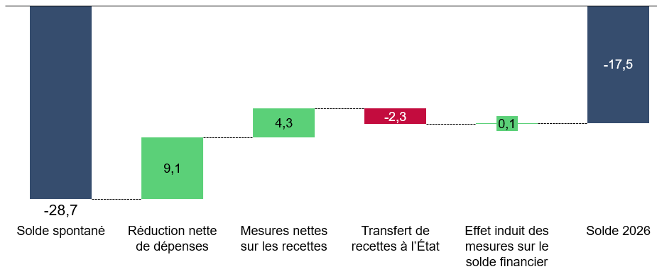 Décomposition indicative de l'évolution du solde prévisionnel de la sécurité sociale entre 2025 et 2026