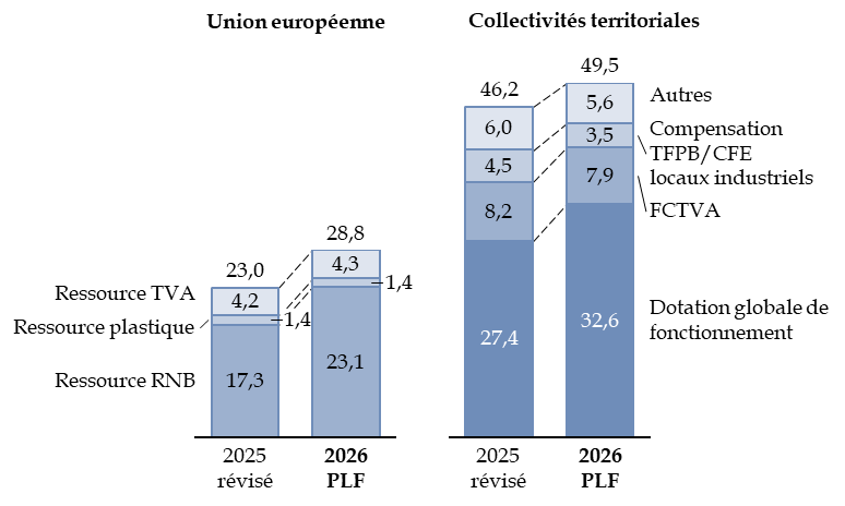 Cette diversité s'est accrue depuis plusieurs années avec les versements de l'Union européenne correspondant au remboursement du plan de relance (6,1 Mds€ en 2026, en hausse de + 2,9 Mds€ par rapport à 2025).
