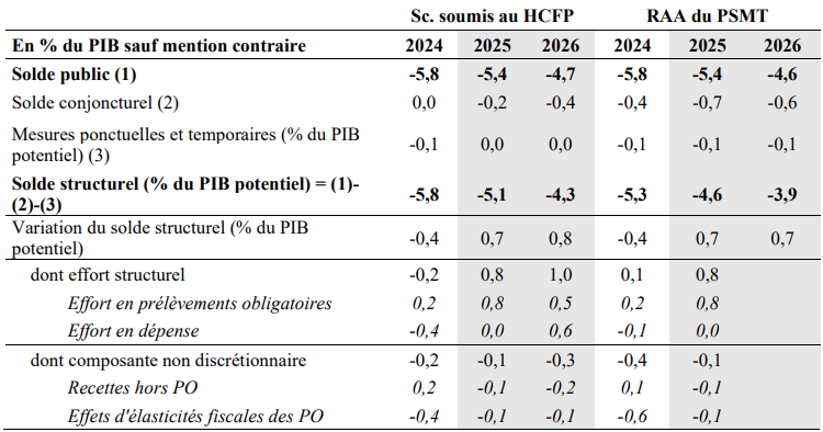 S'agissant du niveau du solde public, selon le HCFP, « l'exercice 2025, après deux années noires, marquerait une toute première étape, certes limitée, mais réelle, de redressement des comptes publics ».