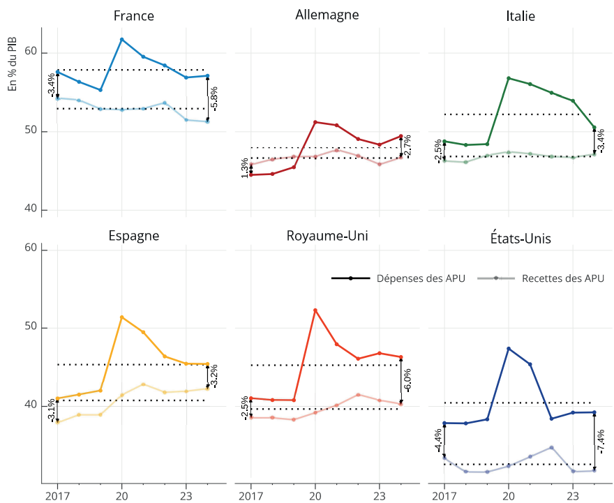 Sur les huit précédents exercices (2017-2024), le déficit des administrations centrales a en moyenne été de 4,7 % du PIB ; celui des administrations de sécurité sociales de 0,1 % du PIB, en lien notamment avec des dépenses exceptionnelles en 2020 pour faire face à la pandémie de Covid-19 ; et celui des collectivités territoriales également de 0,1 % du PIB.