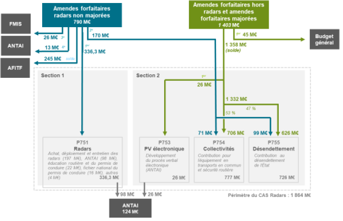 - d'autre part et surtout, créer une affectation directe d'une fraction du produit des AF Radars à l'ANTAI. Ainsi, lorsque le produit des AF Radars est supérieur à 532,65 millions d'euros949(*), l'ANTAI bénéficie désormais d'une affectation de recettes, dans la limite de 13 millions d'euros.