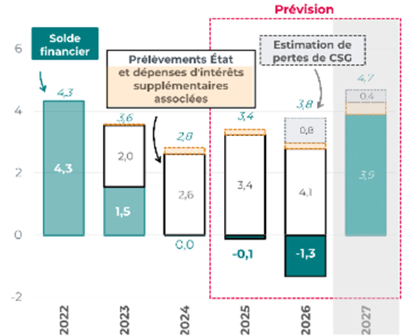 1. En déficit du fait des prélèvements de l'État, l'Unédic verrait son endettement s'alourdir en 2026