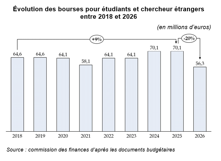 De plus, le montant des bourses scolaires versé depuis le programme 151 devrait être de 104,5 millions d'euros, en baisse de 4 %, du fait d'un recul de 10 % du nombre d'élèves boursiers français.