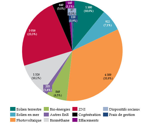 Sur les 7,7 milliards d'euros évalués par la CRE au titre de 2026, 4,4 milliards d'euros, soit 57 % du total, résulteraient des soutiens à la production d'électricité d'origine photovoltaïque.