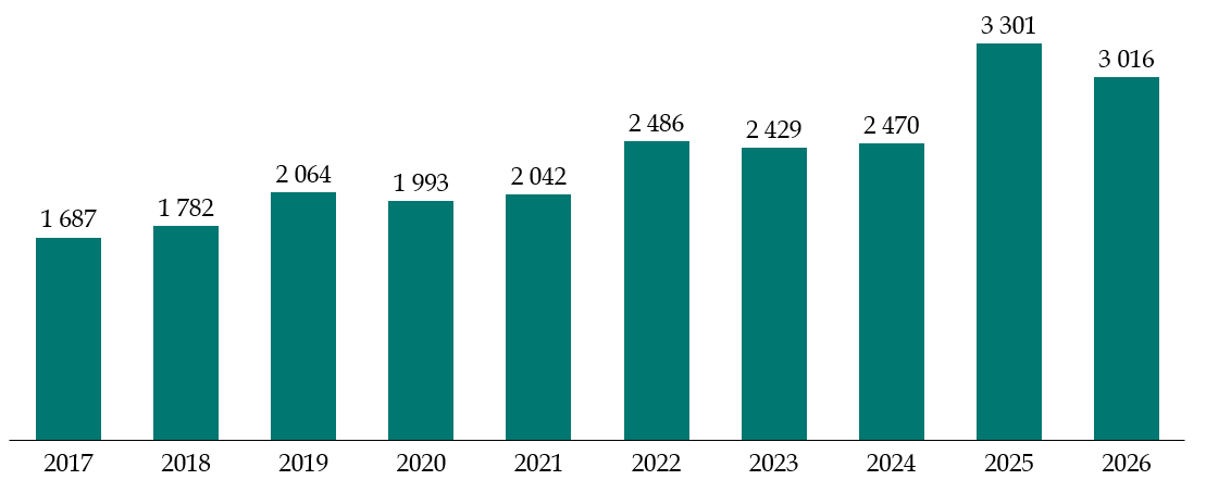 Évolution du coût du soutien aux ZNI (2017-2026)