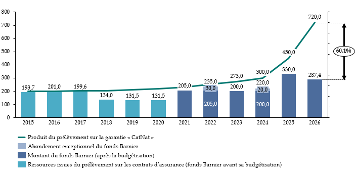 Le rapporteur spécial vérifiera donc que cette équivalence se maintient dans les années à venir. Il est néanmoins peu probable que ce soit le cas pour 2026, en raison de la très forte progression du rendement du produit sur le prélèvement de la garantie CatNat.