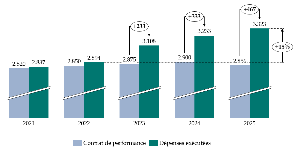 Ils apparaissent lorsque l'on mesure l'écart entre les investissements annuels qui étaient prévus par le contrat de performance actuel de SNCF Réseau et les dépenses réellement exécutées. Toutefois, le phénomène d'inflation, particulièrement dynamique au cours des mois qui ont suivi la signature du contrat en 2022, doit conduire à relativiser les hausses observées.
