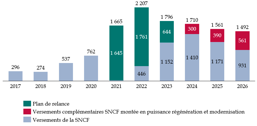 À compter de 2028, la SNCF s'est par ailleurs engagée à financer structurellement 500 millions d'euros sur les 1,5 milliard d'euros annuels d'investissements supplémentaires dans la régénération et la modernisation des infrastructures ferroviaires.