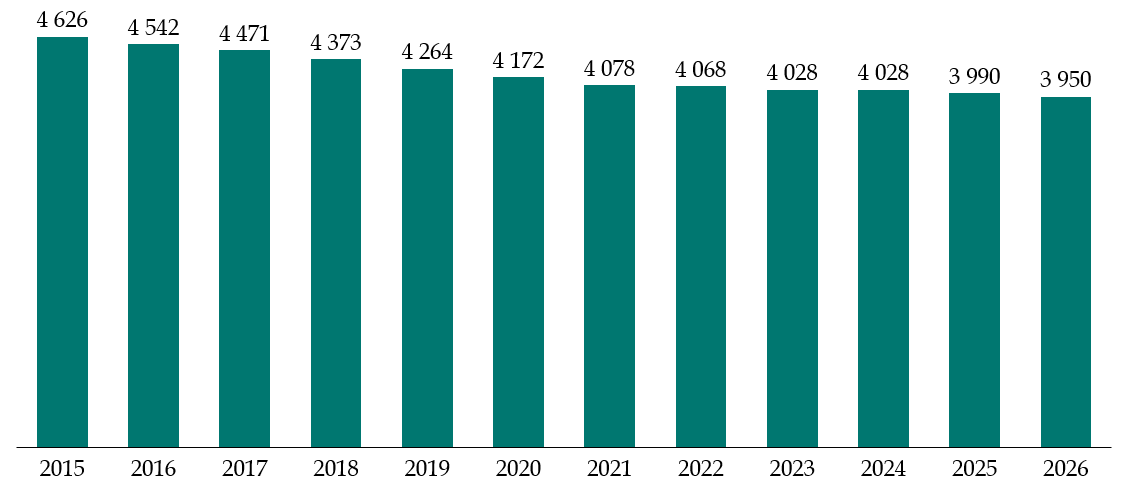 Évolution du plafond d'emplois de VNF (2015-2026)