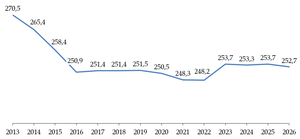 Depuis 2023, la subvention pour charges de service public (SCSP) de VNF s'est globalement stabilisée en volume à environ 253 millions d'euros. La trajectoire financière prévisionnelle incluse dans le contrat d'objectifs et de performance de l'opérateur prévoit même sa stabilisation sur l'ensemble de la période 2023-2032.