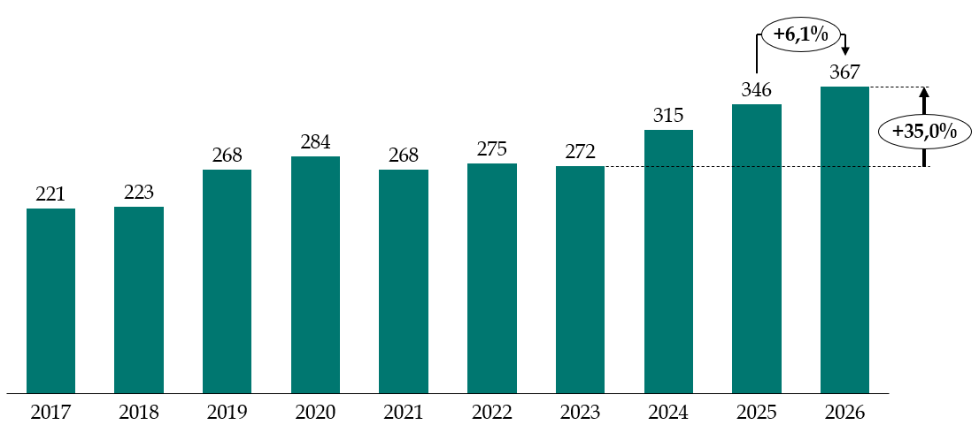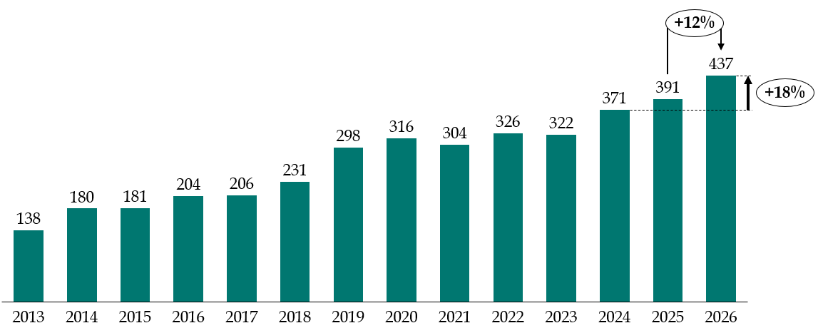 Cette augmentation fait suite à des hausses plus substantielles observées en 2024 et en 2025. Ce dynamisme traduit la mise en oeuvre de la trajectoire d'investissement pluriannuelle revalorisée de la DSNA qui s'inscrit dans le nouveau plan de performance RP4 négocié avec la commission européenne pour la période 2025-2029.