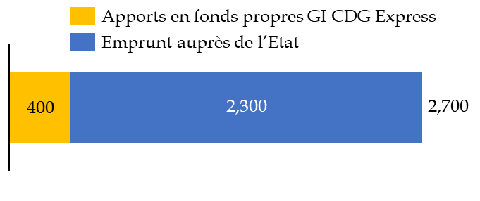 Créé par un amendement du Gouvernement au projet de loi de finances pour 2018, le programme 869 « Prêts à la société concessionnaire de la liaison express entre Paris et l'aéroport Paris-Charles de Gaulle » permet d'octroyer des prêts à la société concessionnaire de la ligne « Charles de Gaulle Express ». Le contrat de prêt initial a été signé le 20 décembre 2018, pour une durée de 40 ans à partir du 11 février 2019, à un taux fixe de 3,2 % suivant des échéances semestrielles, à partir de 2024.