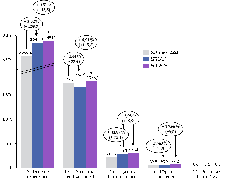 Toutefois, l'année 2026 ne sera marquée par aucune mesure catégorielle, compte tenu de la nécessité de redresser les comptes publics. La hausse de 45,5 millions d'euros des dépenses de personnel en 2026 (+ 0,5 %) est donc uniquement due au glissement vieillesse-technicité (GVT), ainsi qu'à l'évolution de la contribution de la mission au compte d'affectation spéciale (CAS) « Pensions ».