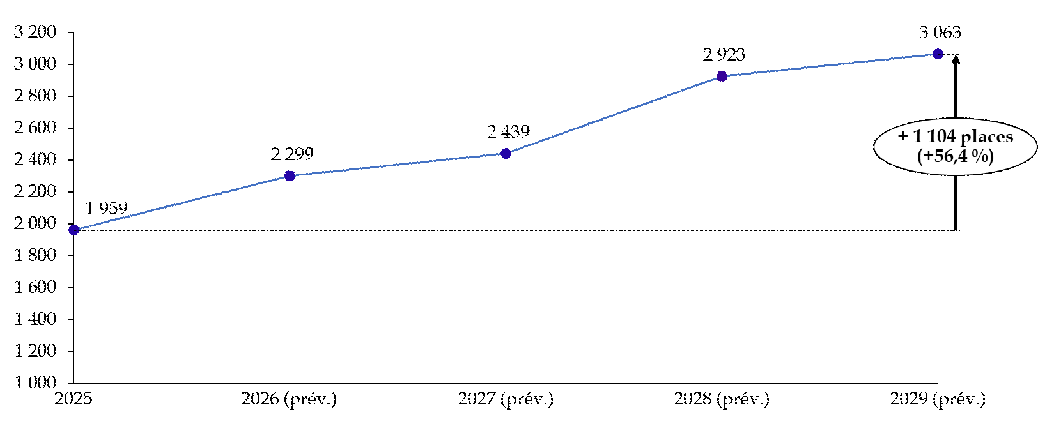 - en 2029 : mise en service du CRA d'Aix-Luynes (140 places), afin de porter le nombre total de places à 3 063.