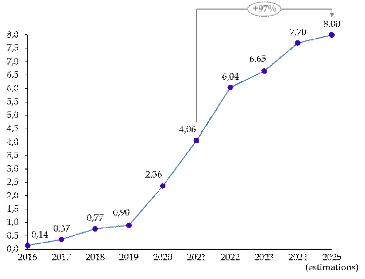 Les dépenses liées aux frais irrépétibles, qui constituent des dépenses de guichet pour l'OFPRA, ont été multipliées par sept depuis 2019, passant de 0,9 million d'euros en 2019 à 7,7 millions d'euros en 2024. Sur la seule période 2021-2025, ces dépenses de guichet ont augmenté de près de 100 %, passant de 4 à 8 millions d'euros.