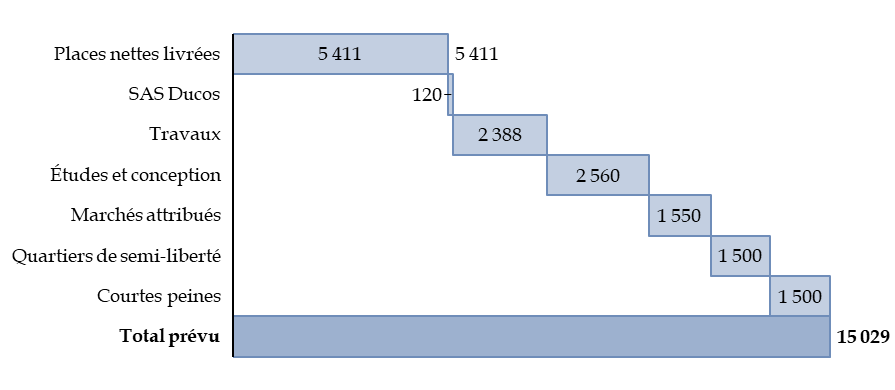Concernant la nouvelle stratégie pénitentiaire, plus aucune référence n'est faite au plan visant à la création de 15 000 places. Le garde des sceaux a d'autres projets, au-delà de la construction des quartiers de haute sécurité et des bâtiments modulaires. Une spécialisation est notamment prévue pour offrir des solutions pénitentiaires différentes en fonction du profil des détenus accueillis.