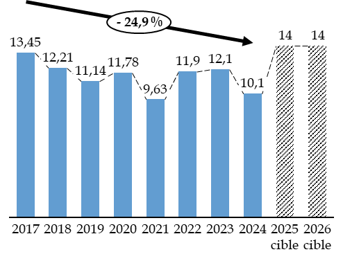 * 8 Crédits du budget général mesurés sur le périmètre des dépenses de l'État défini par la loi de programmation des finances publiques 2023-2027, c'est-à-dire hors contributions au compte d'affectation « Pensions », hors charge de la dette et hors remboursements et dégrèvements.