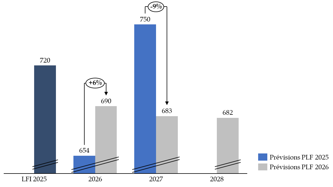 La trajectoire dans les documents budgétaires annexés au projet de loi de finances pour 2025 indiquait d'ailleurs un niveau de crédits inférieur à celui présenté dans le présent PLF : les montants prévus cette année sont supérieurs de 6 % à ceux anticipés pour 2026 l'année précédente.
