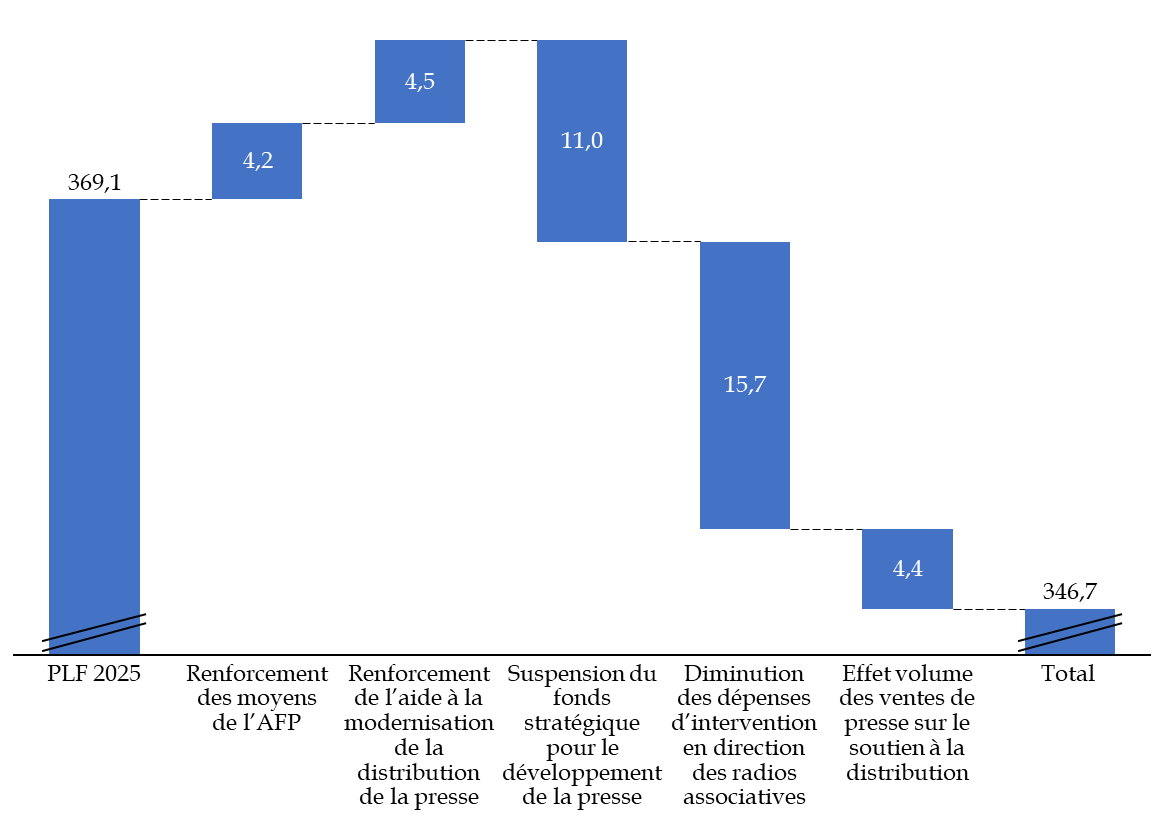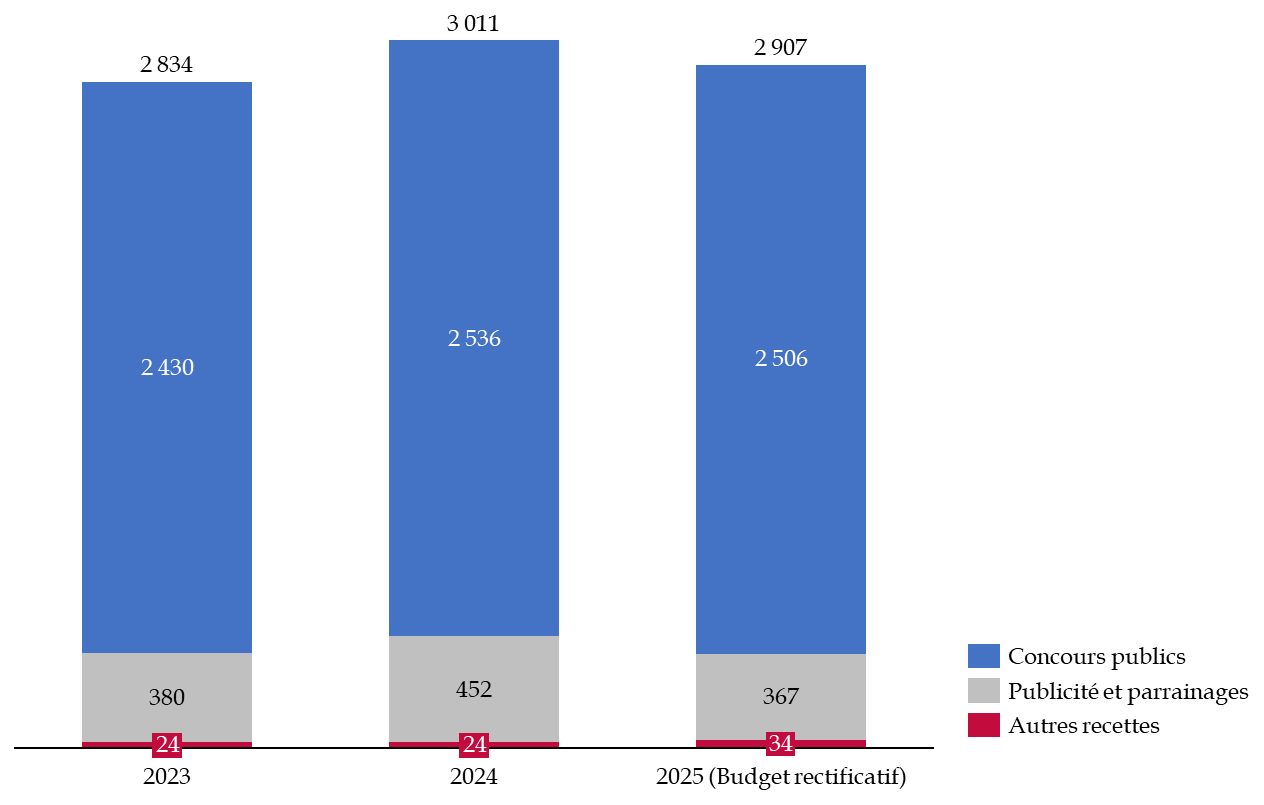 Considérant qu'une baisse des crédits de l'audiovisuel public était légitime afin d'assurer leur participation à l'assainissement de la situation budgétaire nationale, le Sénat a adopté l'année dernière un amendement de réduction des crédits de 80 millions d'euros. Le montant total accordé aux sociétés d'audiovisuel public en loi de finances initiale pour 2025 était donc de 3,949 milliards d'euros.