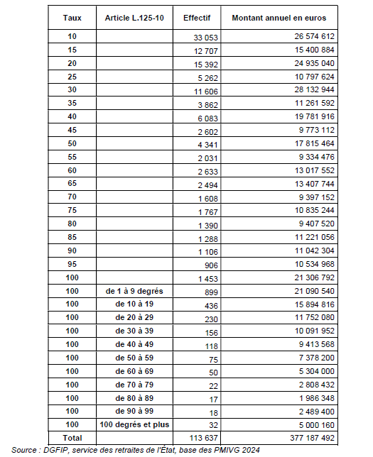 L'année 2026 se démarque cependant par une absence de revalorisation du montant des allocation de reconnaissance et des pensions militaires d'invalidité au 1er janvier 2026. Ces deux pensions sont indexées sur le point de pension militaire d'invalidité (point PMI), lui-même indexé sur l'indice de traitement brut - grille indiciaire (ITB-GI) de la fonction publique. La valeur du point PMI, fixée à 16,07 euros au 1er janvier 20252(*) ne doit pas évoluer au 1er janvier 20263(*).