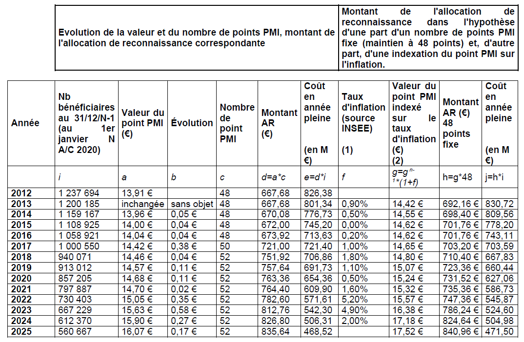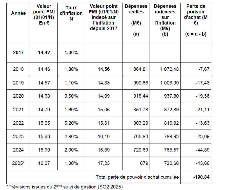 La prévision pour 2025 se base sur une valeur du point PMI proche de la revalorisation ayant effectivement eu lieu au 1er janvier 2025 et cela semble devoir également être le cas en 2026.