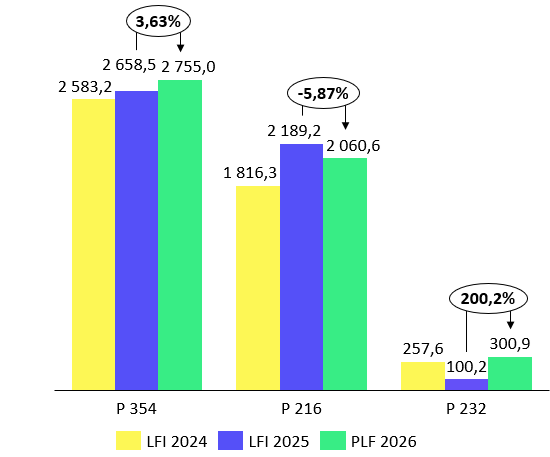 Outre l'aspect cyclique lié à la tenue des deux scrutins nationaux, le montant des crédits du programme 232 pour 2026 prend en compte :