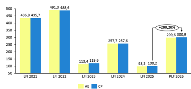 Sources : RAP pour 2016-2024 et PAP pour 2025 et 2026