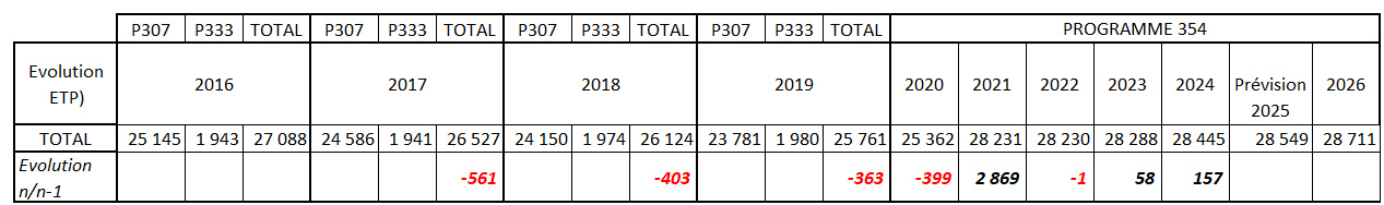 Cette hausse des ETP bénéficie principalement à l'administration territoriale de l'État (P 354), avec 348,33 ETPT supplémentaires en 2026, pour s'établir à 29 627,08 ETPT. Toutefois, cette augmentation intervient après une contraction de 169 ETPT en LFI 2025 par rapport à la LFI 2024.