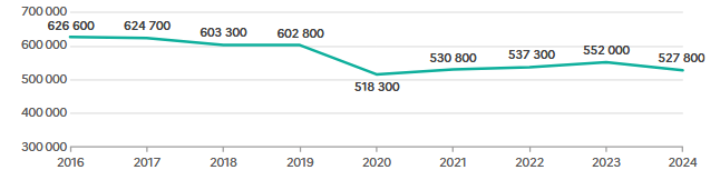 Nombre de victimes de violences sexuelles enregistrées entre 2016 et 2024