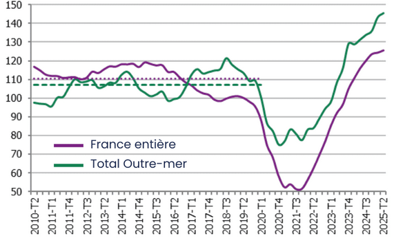 (en base 100 représentant la moyenne sur la période 2004-2025)