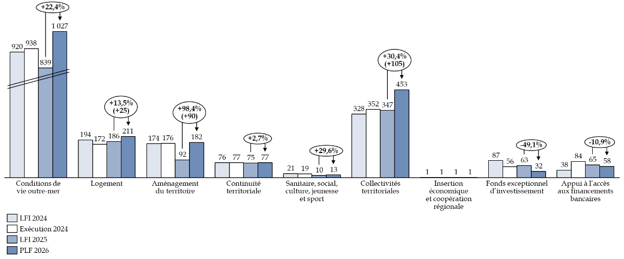 Évolution des crédits de la mission « Outre-mer » entre 2025 et 2026