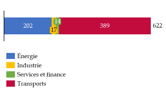 Répartition par secteurs des emplois dans les entreprises détenues majoritairement par l'État