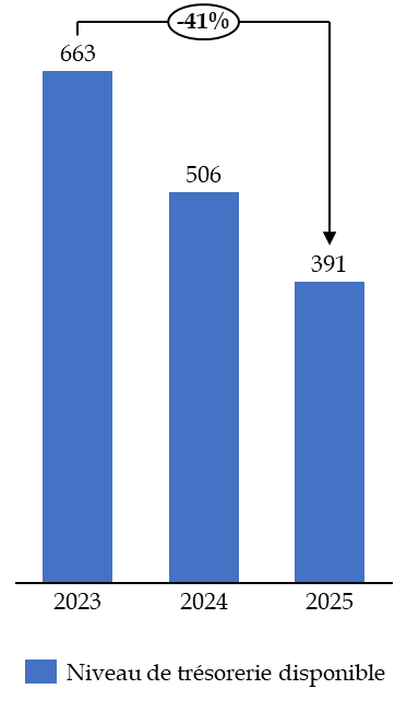 Note : Les montants indiqués correspondent à la trésorerie disponible à la fin de l'exercice. Le montant pour 2025 est prévisionnel.