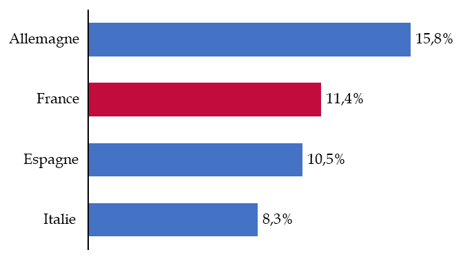 En 2024, le taux de retour de la France sur le périmètre du programme Horizon Europe a été de 9,5 % soit 977 millions d'euros53(*). Sur la période 2022-2024, la France est le second pays bénéficiaire des aides d'Horizon Europe avec 11,4 % des subventions captées par la France.